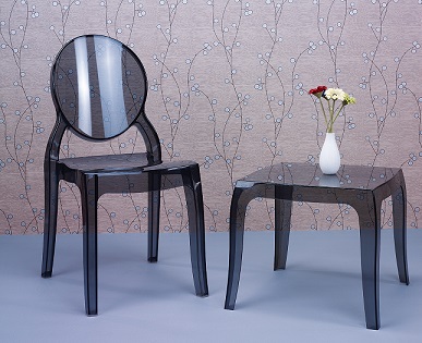 Polikarbonat hammaddeden üretilen sehpa Queen, transparan renkleri, istiflenebilmesi, UV koruma özelliği ve kendine özgü çizgisiyle iç mekan kullanımı için ideal bir üründür.